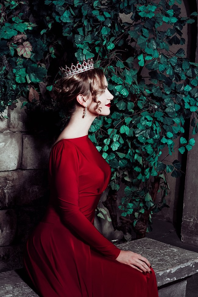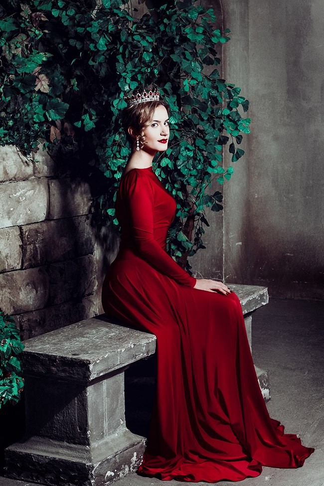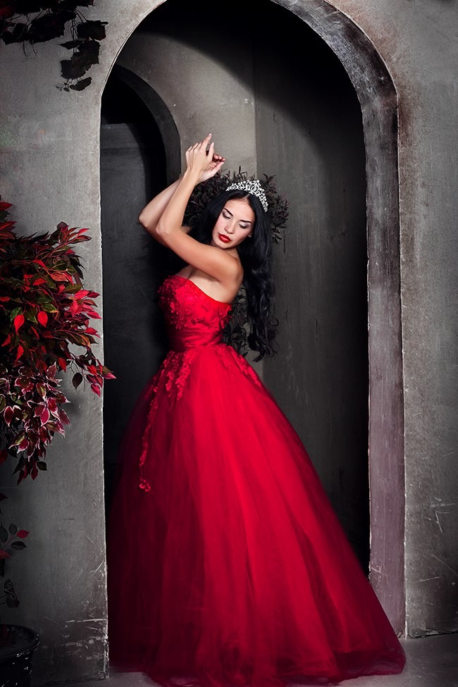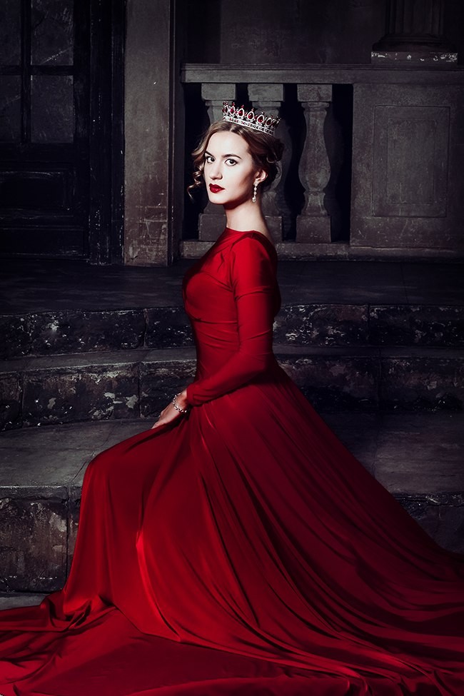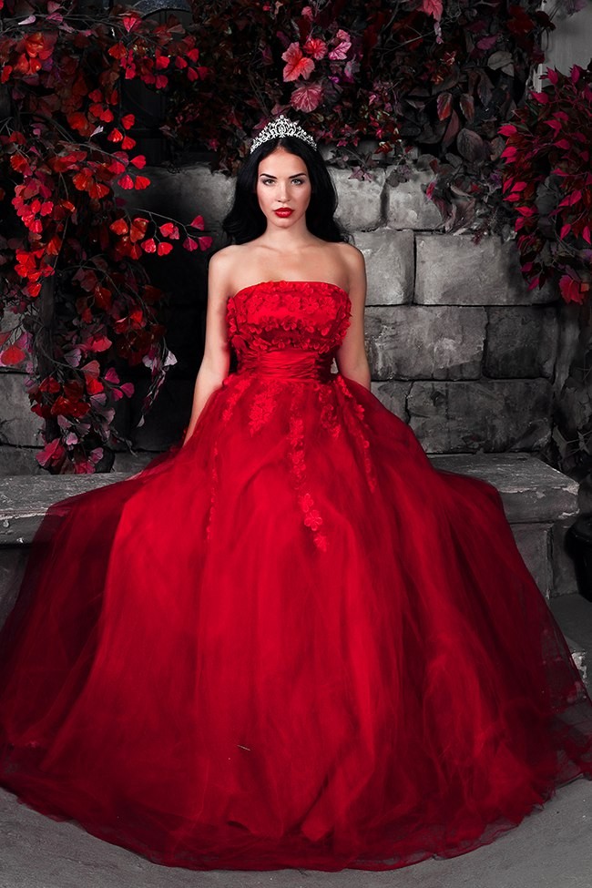 in dresses with huge trains and crowns, photo shoots in the